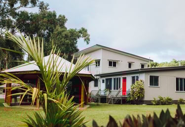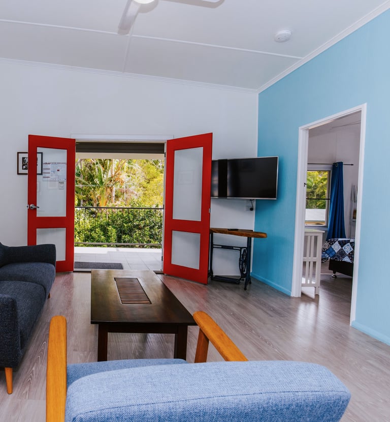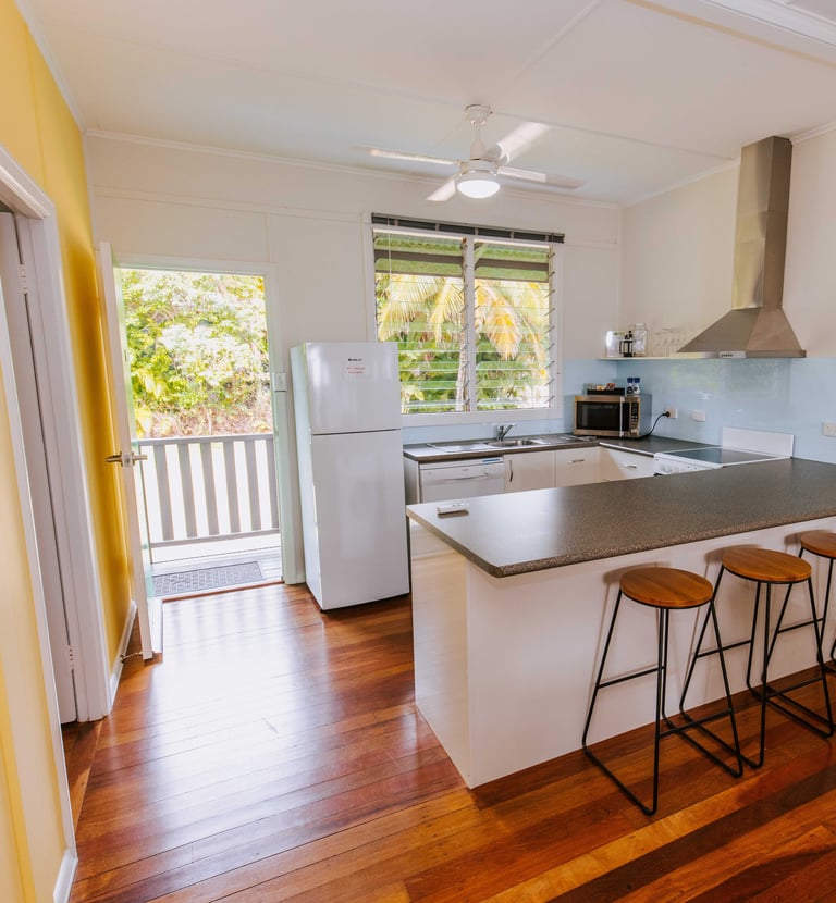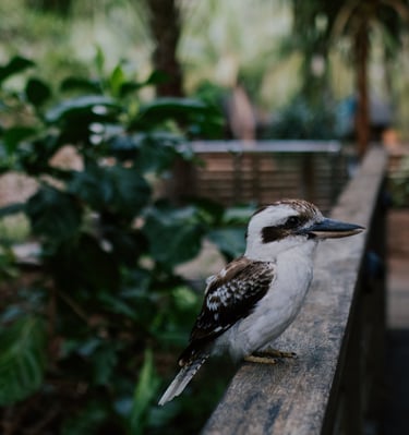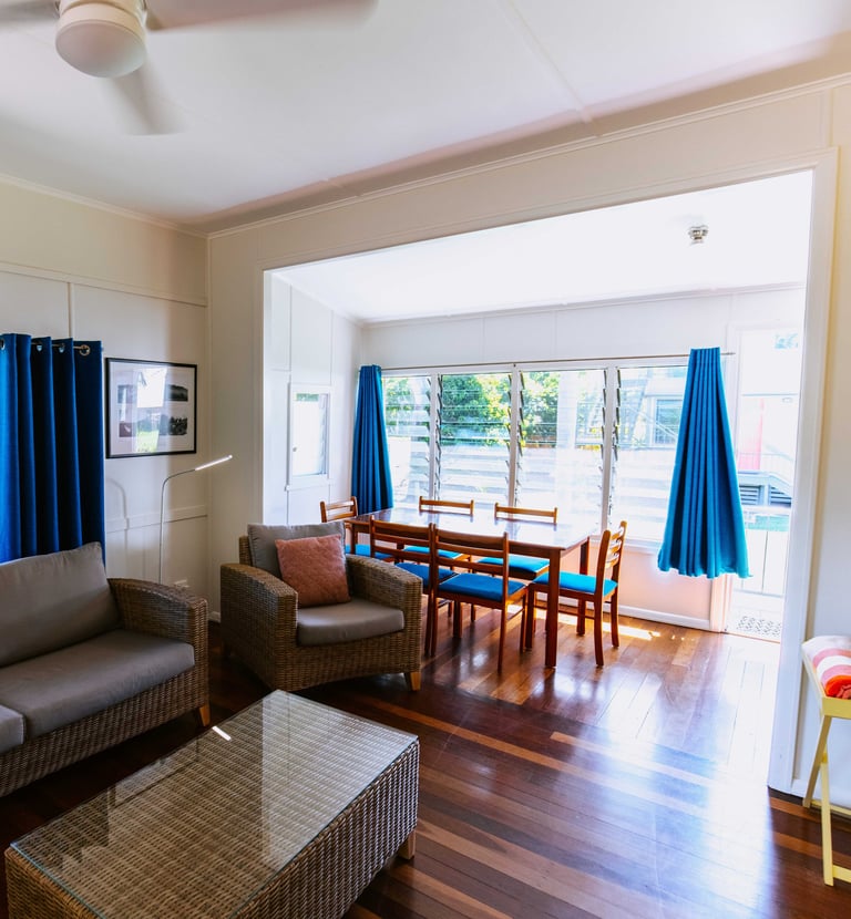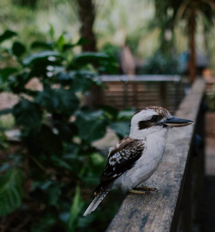 Set in tropical gardens, the grounds invite the island’s wildlife; wallabies and the occasional koala come to say hello, along with a vast cast of charismatic birds.