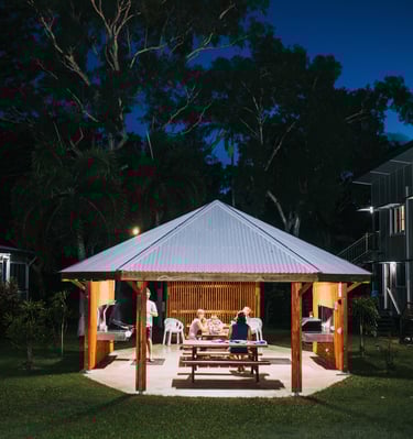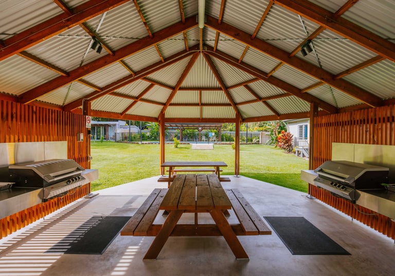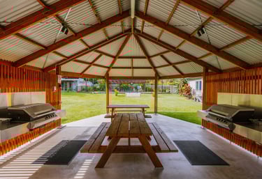 The units are set in tropical gardens around a gazebo with BBQ and seating, perfect to get together with family and friends.